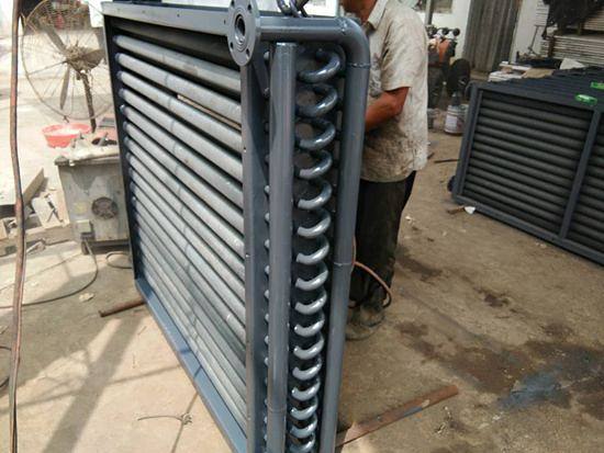 翅片散热器主要用于干燥系统的空气加热,是热风机组的主要设备。散热器使用的热介质可以是蒸汽、热水或导热油。蒸汽工作压力一般不超过0.8兆帕,热风温度低于150℃ 翅片散热器主要由空气流动方向上的三排平行螺旋翅片管组成。SRZ型散热翅片管束的加工工艺是先放入0.5×10毫米无缝钢管,然后热镀锌。不锈钢管和不锈钢也可以用来制造全不锈钢散热器。SRL型散热器是由钢管和铝带轧制而成的翅片散热器,其单位长度散热面积大于SRZ型散热器。